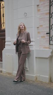 Παντελόνι Flannel Ριγέ Wide Leg Καφέ