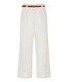 Ψηλόμεσο παντελόνι με ρεβέρ, θηλύκια και αποσπώμενη ζώνη όψης δέρματος με μεταλλική αγκράφα. Διαθέτει πλαϊνές τσέπες και κλείσιμο με φερμουάρ και κόπιτσα στο μπροστινό μέρος.