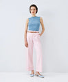 Ψηλόμεσο παντελόνι με ρεβέρ, θηλύκια και αποσπώμενη ζώνη όψης δέρματος με μεταλλική αγκράφα. Διαθέτει πλαϊνές τσέπες και κλείσιμο με φερμουάρ και κόπιτσα στο μπροστινό μέρος.