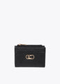 Compact wallet with elegant design and embossed diamond monogram. High-quality synthetic material, secure zip closure, and multiple card slots. Metallic detail on the front adds sophistication.