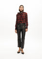 Leather effect trousers with decorative zips on the front. Fitted design with back pockets. Front button and zip closure. Subtle slit at the hem for a modern touch.